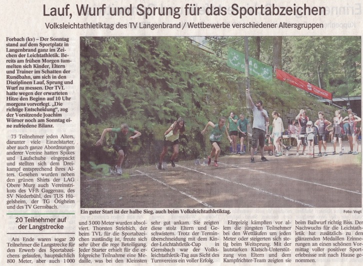 Volksleichtathletiktag Langenbrand- BT 12.07.2016